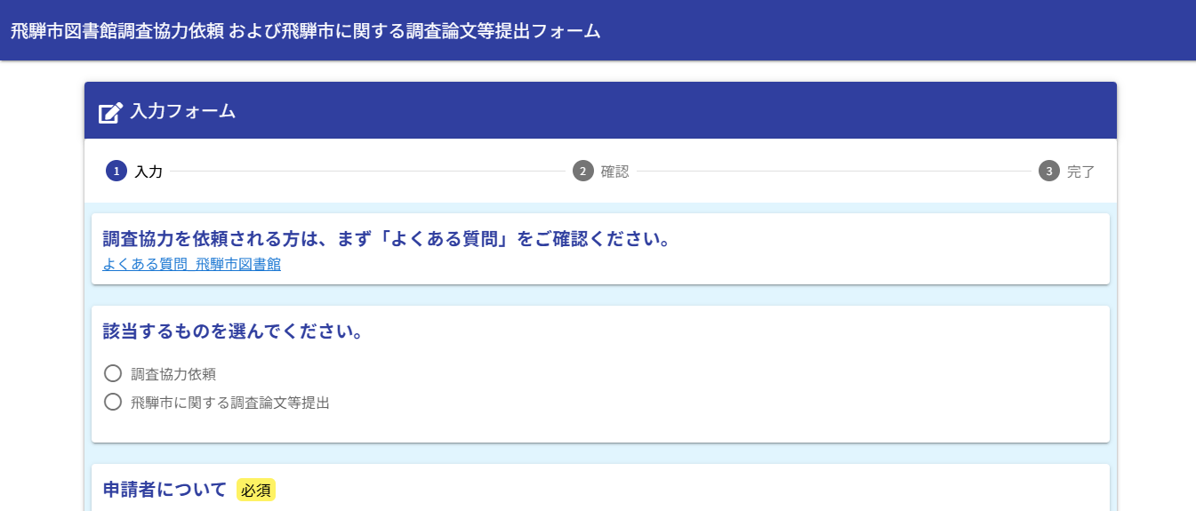 飛騨市図書館調査協力依頼フォーム(LoGoフォーム)